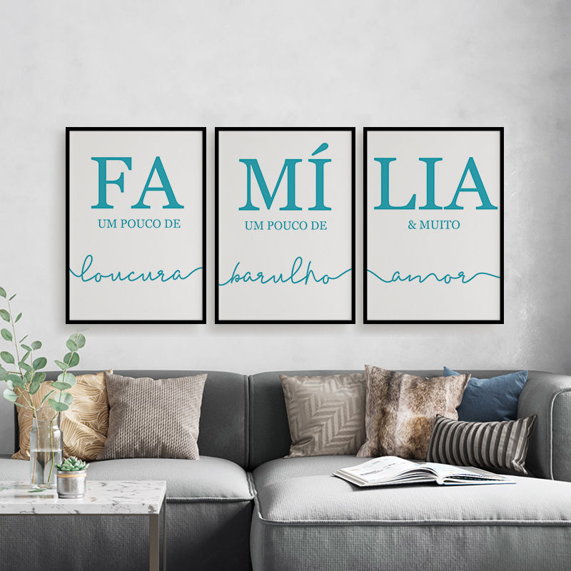 Família Loucura Barulho Amor - Rosa Azul e Branca