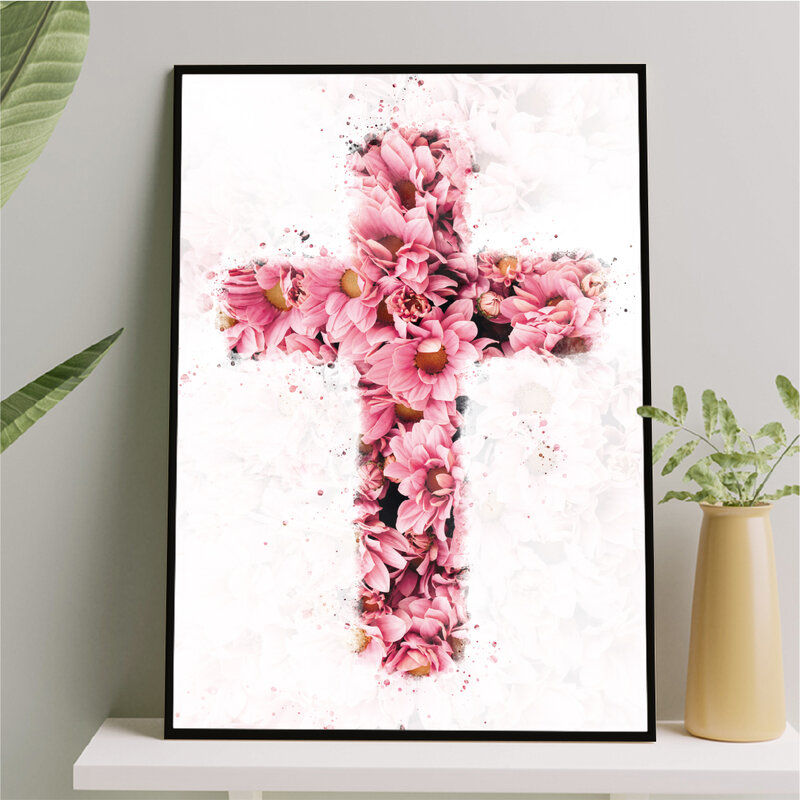 Cruz - Nossa Senhora - Aquarela flores - Só a tua graça me basta Rosa e Azul